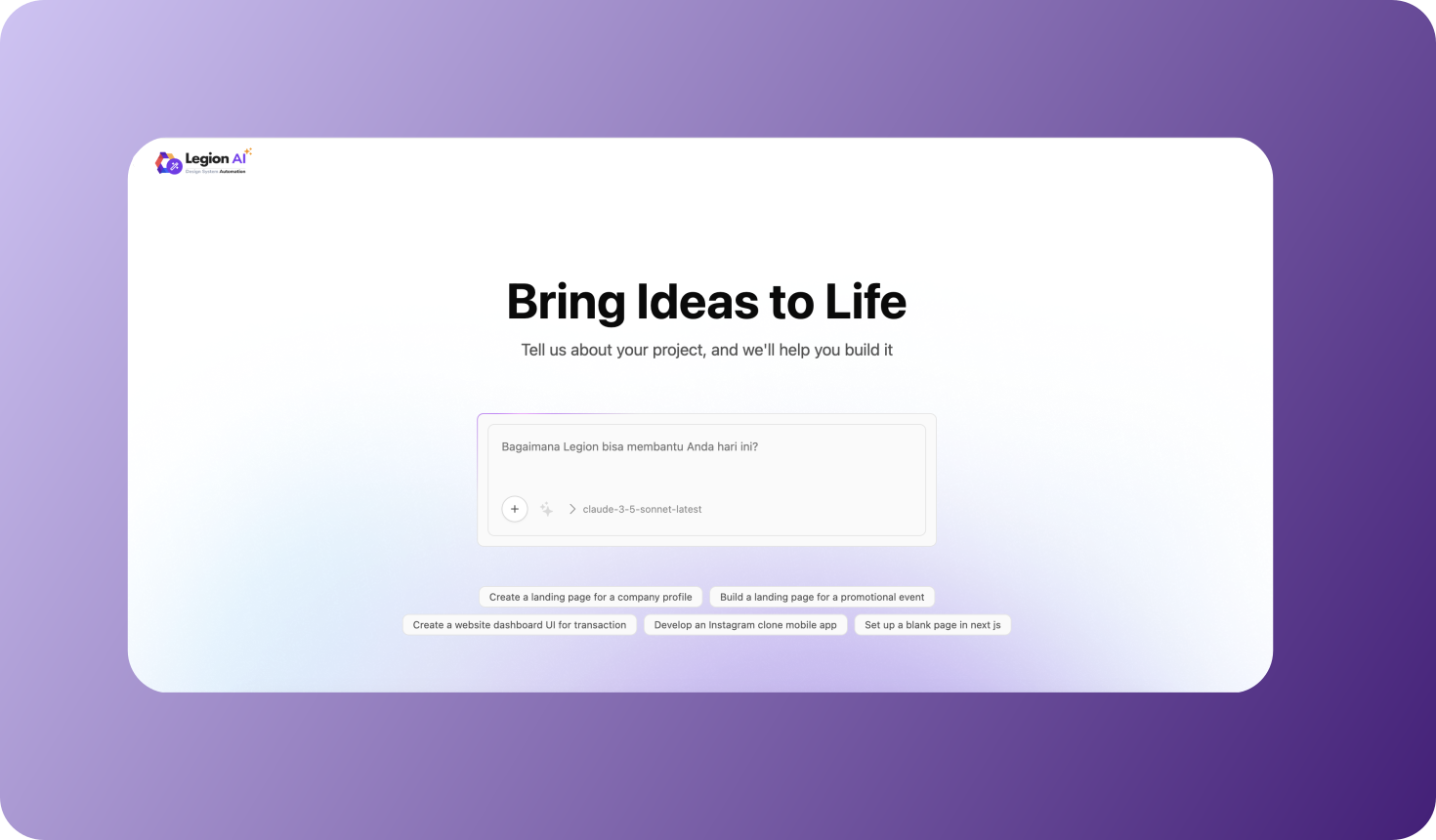 Legion AI AI chatbot code builder using Legion design system components and patterns.