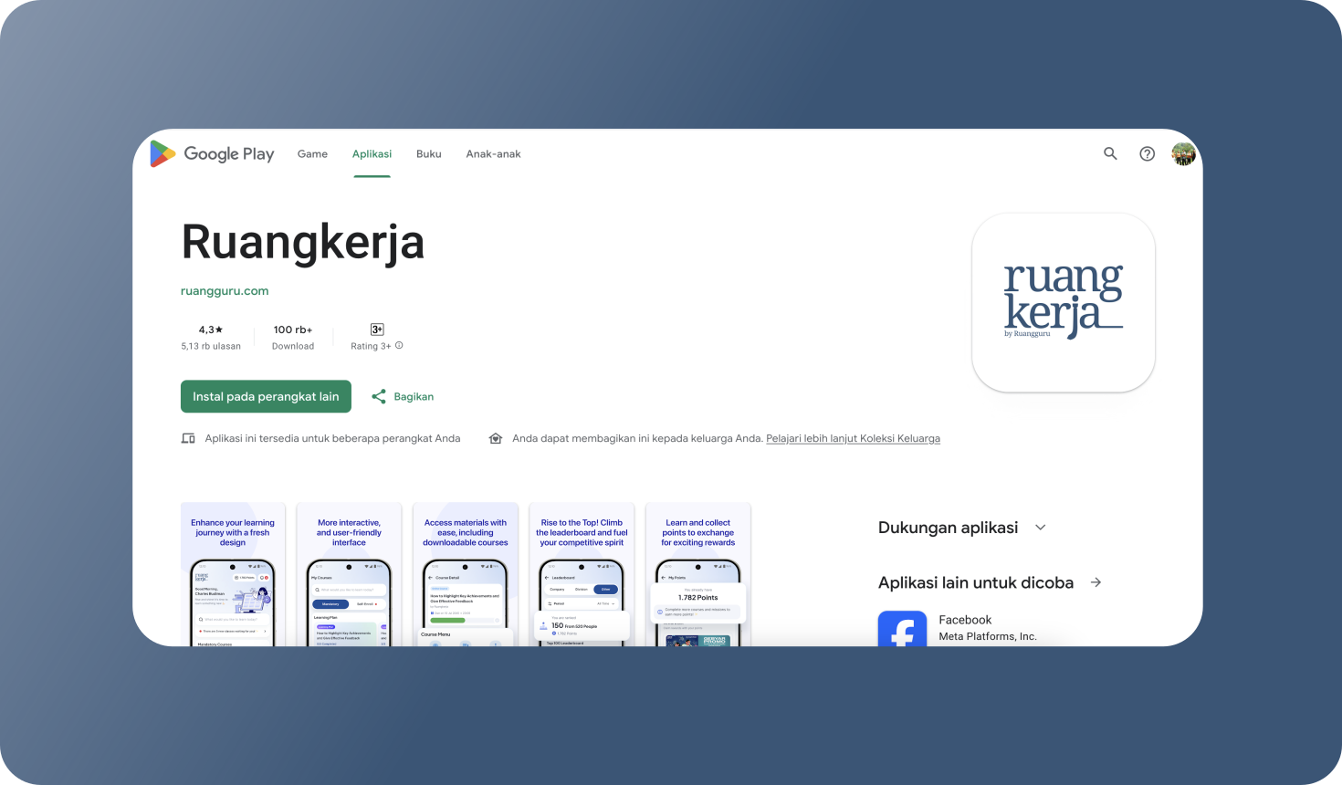 Ruangkerja App and Website for Corporate Learning Management System Platform.